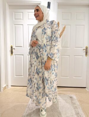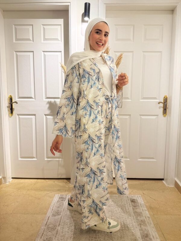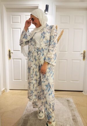 The two-piece design includes a stylish cardigan and comfortable pants, offering a relaxed and flattering fit for effortless daily wear. Whether you’re heading out for a casual brunch or a day out, this suit blends comfort with modern elegance.